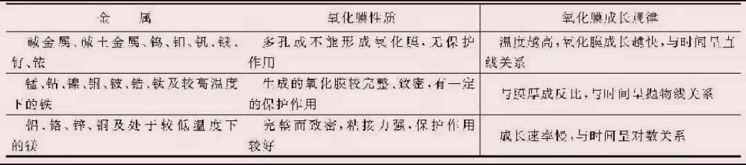 普遍金屬空氣氧化膜的特性及成才規律性
